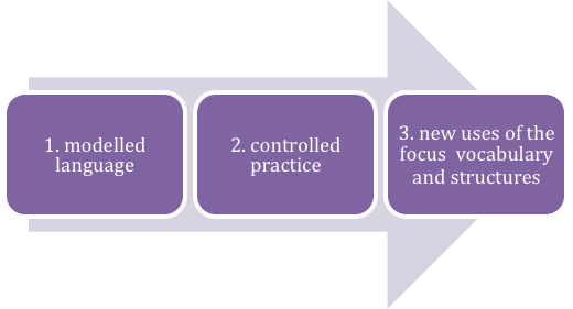 Both speaking and writing are productive skills. To enable learners to produce language, teachers select the vocabulary and structures, and the spoken or written text types which will be the focus of a lesson or unit of work.As summarised in the diagram and example activity below, firstly the selected language is presented to the learners through listening and/or reading activities. That is, the teacher provides input and models the vocabulary and structures that the students are expected to produce. Secondly, students are given opportunities for controlled practice of that language. Ultimately this supports them to use that language to produce new spoken and written texts.